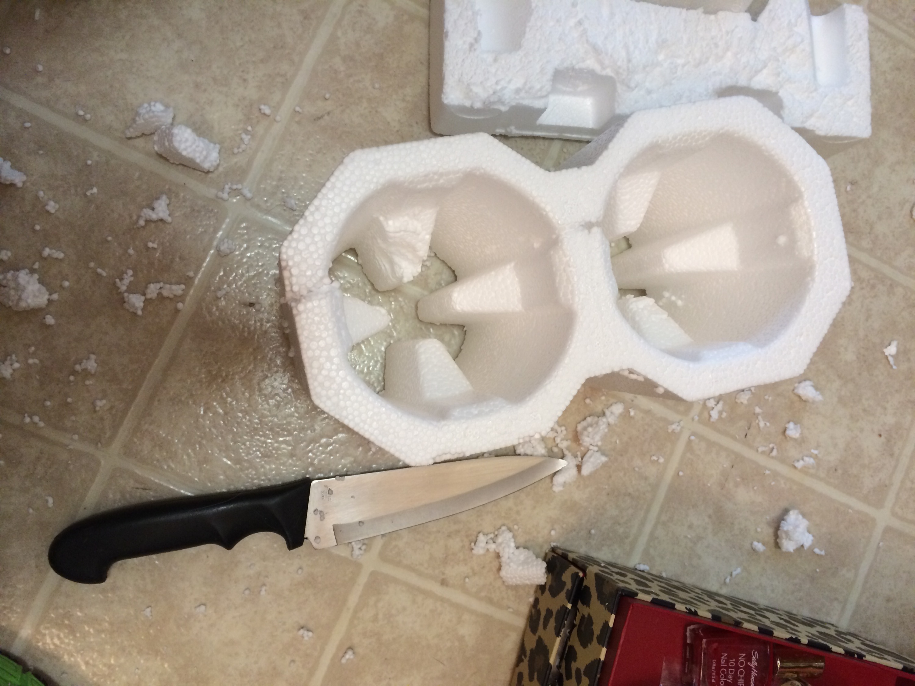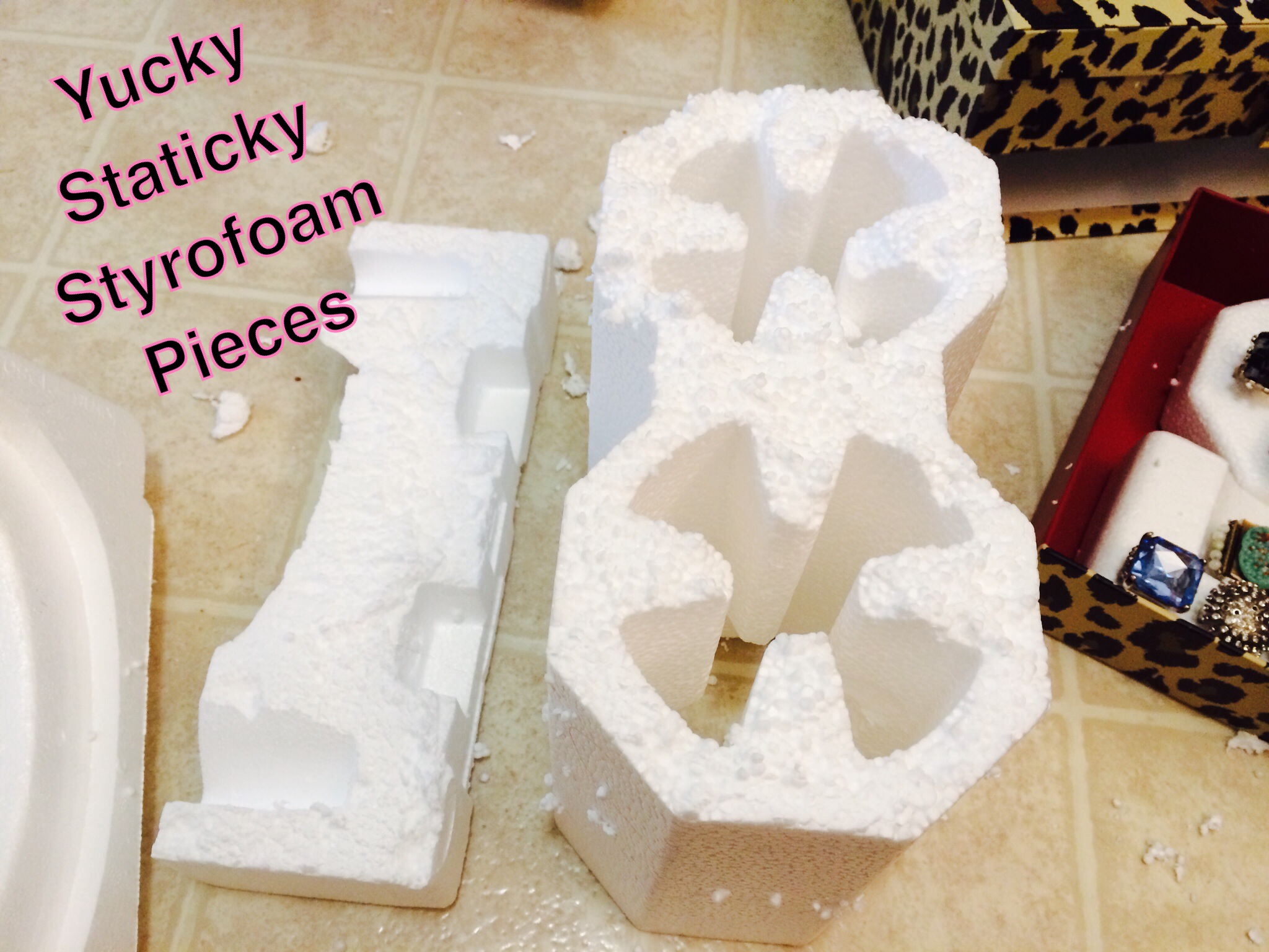 I actually put these “foamy” products in the recycle bin in my building’s garbage area. According to the La Sanitation website, styrofoam falls under “plastics” & IS recyclable, YAY!!! Thank GOD! And then I thought, “How perfect some of those pieces would be right now.”